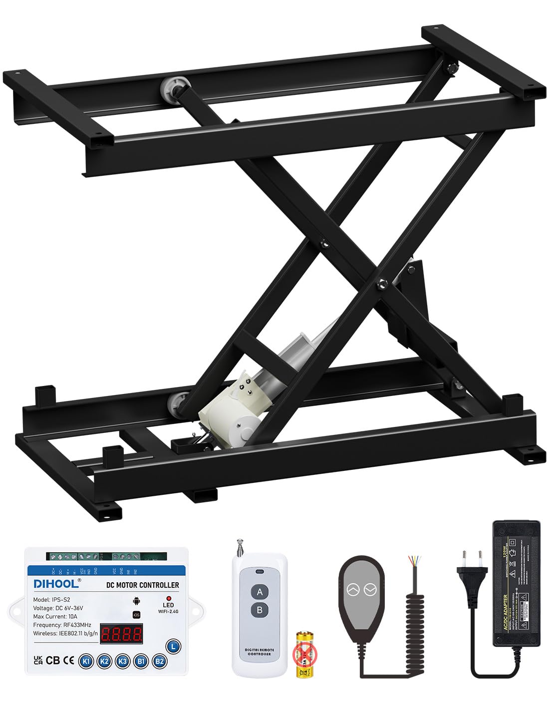 DIHOOL Scherenhubtisch Elektrisch scherenhebebühne kfz hebebühne DIY hubtisch(150kg Tragkraft,485mm Hubhöhe)